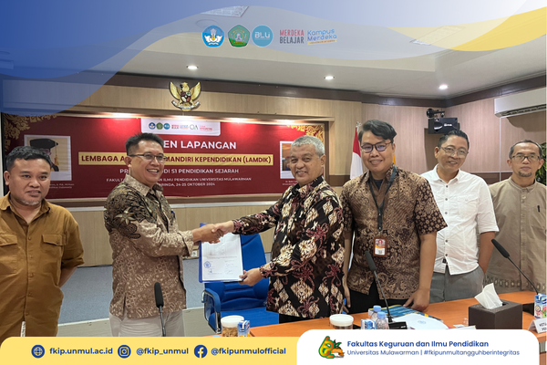 Samarinda, 25 Oktober 2024 - Fakultas Keguruan dan Ilmu Pendidikan (FKIP) Universitas Mulawarman menyelenggarakan Asesmen Lapangan yang dilakukan oleh Lembaga Akreditasi Mandiri Kependidikan (LAMDIK) untuk Program Studi S1 Pendidikan Sejarah pada Kamis hingga Jumat, 24-25 Oktober 2024. Kegiatan ini dilaksanakan di Dekanat Lantai 3 dan dihadiri oleh sejumlah pejabat terkemuka di Universitas Mulawarman serta para asesor yang ditunjuk oleh LAMDIK.