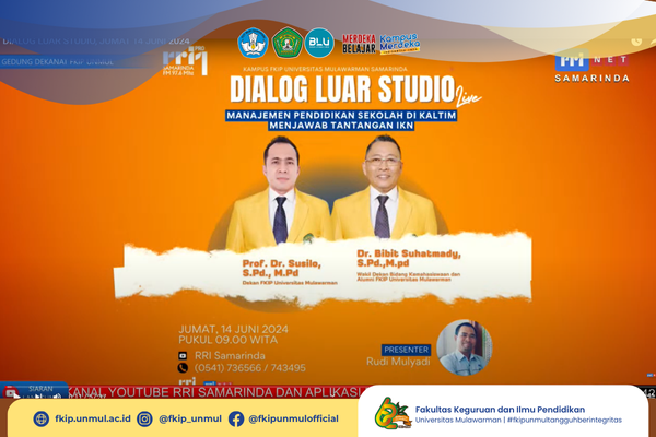 Samarinda (14/06), Radio Republik Indonesia (RRI) Samarinda menyelenggarakan dialog interaktif yang bertempat di kawasan kampus Gunung Kelua Fakultas Keguruan dan Ilmu Pendidikan (FKIP) Universitas Mulawarman Samarinda. Acara yang dipandu oleh presenter Rudy Mulyadi ini mengusung tema “Manajemen Pendidikan Sekolah di Kalimantan Timur Menghadapi Tantangan Ibu Kota Negara (IKN) Nusantara”.