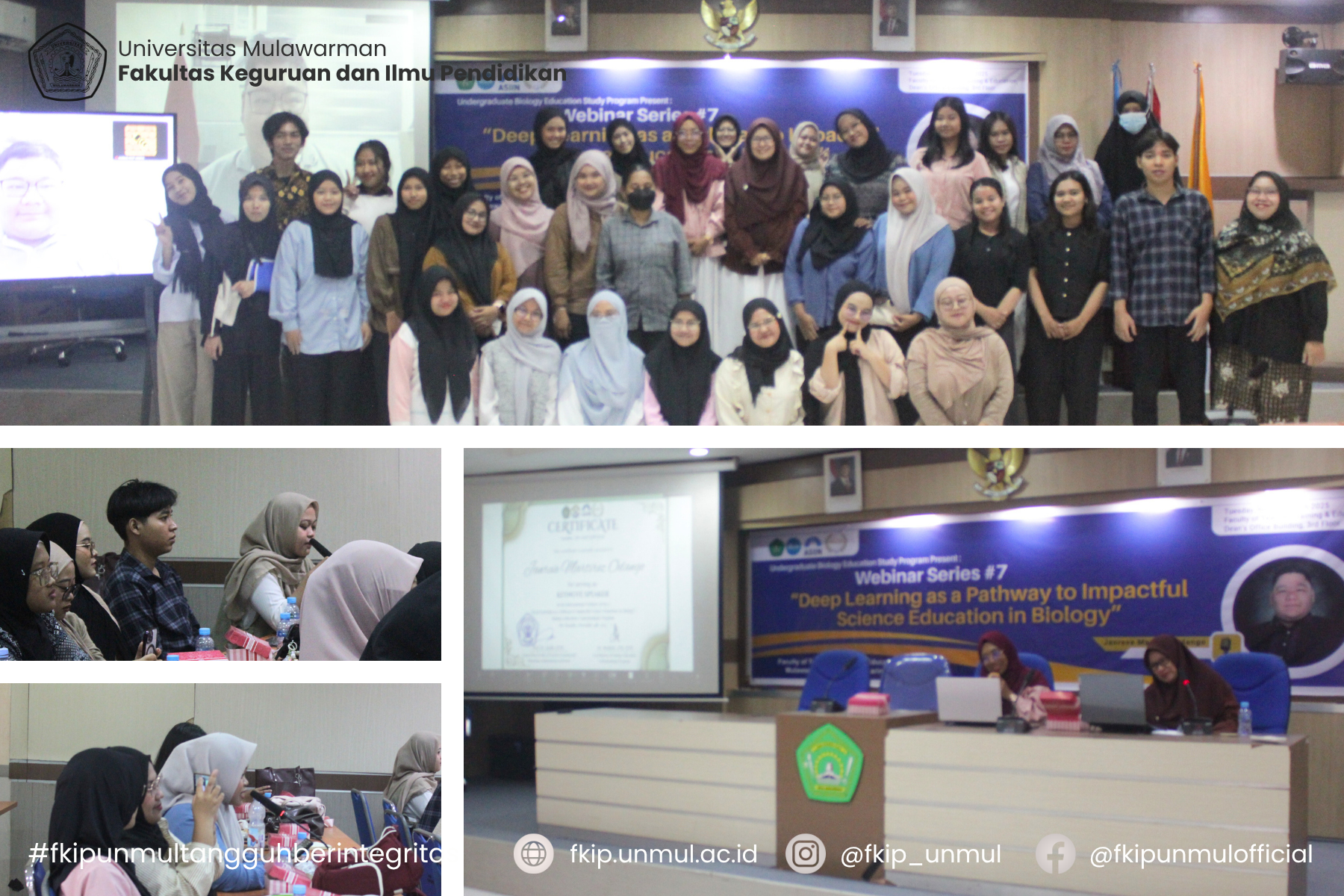 Samarinda, 4 November 2025 – Program Studi Pendidikan Biologi, Fakultas Keguruan dan Ilmu Pendidikan (FKIP) Universitas Mulawarman sukses menyelenggarakan International Webinar Series #7 bertema “Deep Learning as a Pathway to Impactful Science Education in Biology”. Kegiatan ini berlangsung secara hybrid, bertempat di Ruang Rapat Utama Gedung Dekanat Lantai 3 FKIP UNMUL dan melalui platform Zoom Meeting.