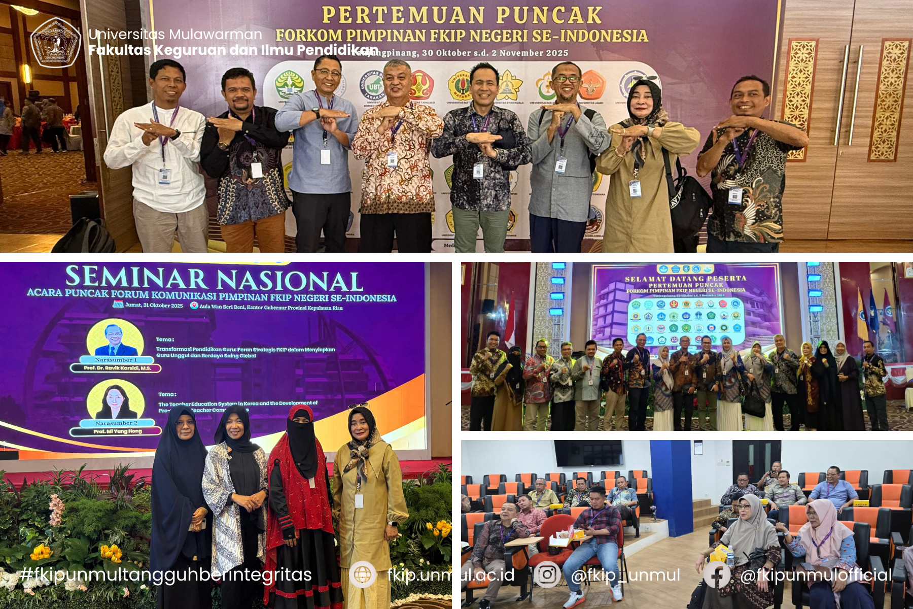 Kepulauan Riau, 30 Oktober – 2 November 2025 — Fakultas Keguruan dan Ilmu Pendidikan (FKIP) Universitas Mulawarman turut berpartisipasi pada kegiatan Forum Komunikasi (FORKOM) Pimpinan FKIP Negeri se-Indonesia yang tahun ini diselenggarakan oleh FKIP Universitas Maritim Raja Ali Haji (UMRAH). Acara yang berlangsung di Aula Wan Seri Beni, Dompak, Kepulauan Riau ini diikuti oleh 380 peserta dari 34 FKIP Negeri se-Indonesia.