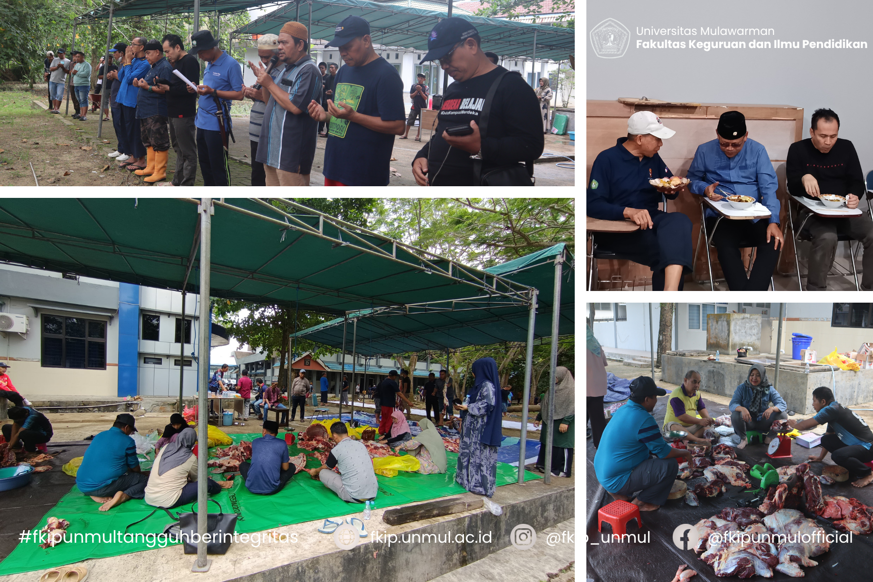 Pada tahun ini, FKIP Universitas Mulawarman menyalurkan tujuh ekor sapi kurban yang merupakan bentuk partisipasi dan keikhlasan dari sivitas akademika FKIP. Daging kurban dibagikan kepada sivitas akademika, tenaga kependidikan, serta masyarakat di lingkungan sekitar kampus FKIP sebagai wujud nyata kepedulian sosial dan kontribusi FKIP terhadap lingkungan.