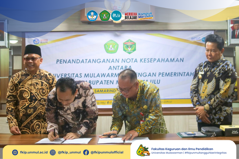 Samarinda (31/05), Fakultas Keguruan dan Ilmu Pendidikan (FKIP) Universitas Mulawarman (UNMUL) turut berpartisipasi dalam kegiatan kunjungan dan penandatanganan Memorandum of Understanding (MoU) antara Universitas Mulawarman dan Pemerintah Kabupaten (Pemkab) Mahakam Ulu (Mahulu). Acara yang dilaksanakan di Ruang Rapat I Lantai Tiga Rektorat UNMUL pada hari Jumat 31 Mei 2024 ini menandai komitmen bersama dalam mendukung Tri Dharma Perguruan Tinggi, khususnya dalam bidang pendidikan, penelitian dan pengabdian kepada masyarakat.