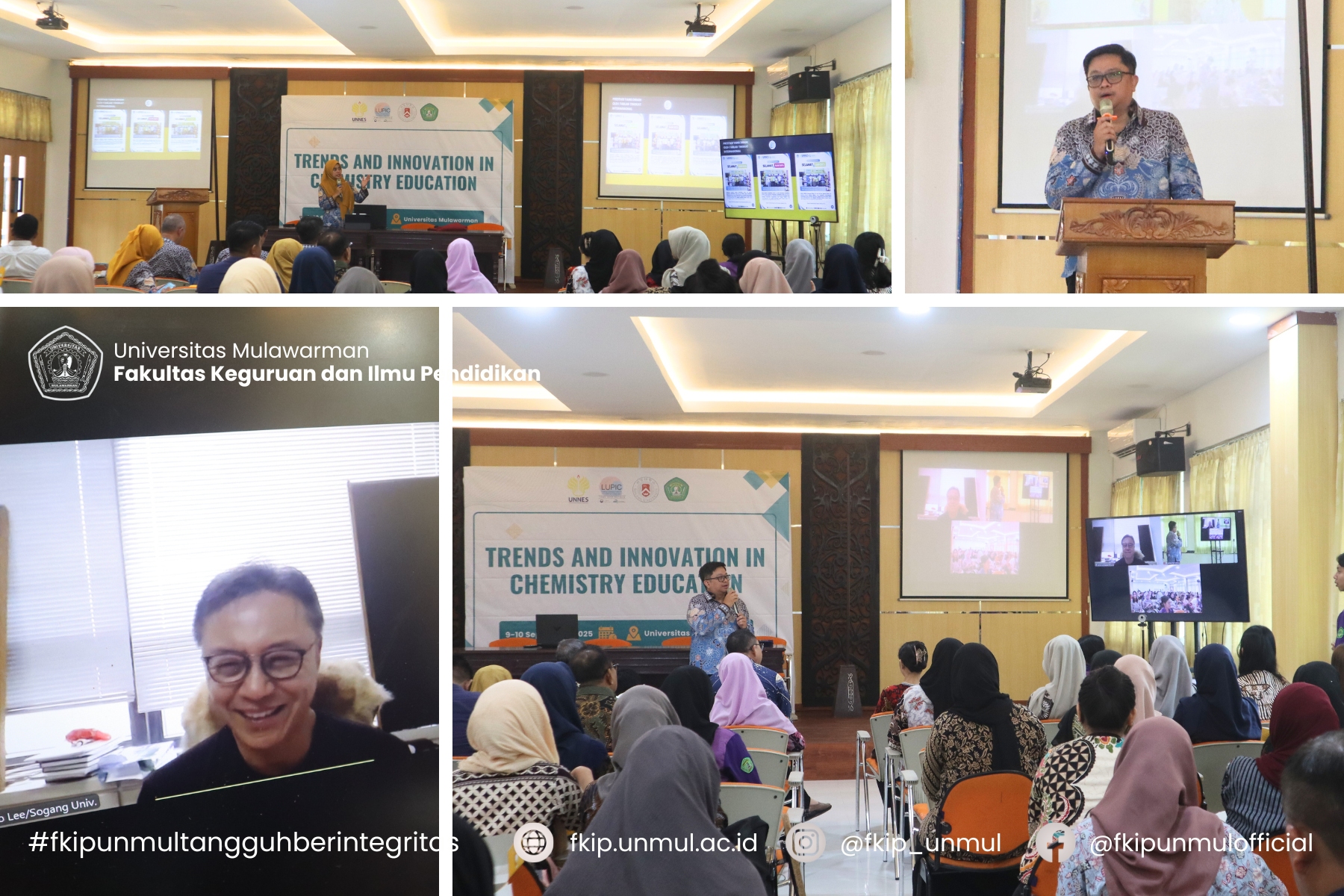Sementara itu, dari Sogang University Korea turut hadir secara daring Prof. Won Koo Lee (LUPIC Coordinator). Materi yang disampaikan mencakup tren inovasi pendidikan kimia, praktik eksperimen skala mikro, pembelajaran kontekstual berbasis sumber daya lokal, multiple intelligences dalam pembelajaran, hingga integrasi teknologi berbasis FabLab seperti 3D printing untuk mendukung pengajaran STEM.