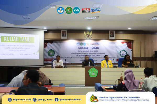 Samarinda (04/03), Fakultas Keguruan dan Ilmu Pendidikan Universitas Mulawarman melaksanakan Kuliah Tamu dengan Pembicara Dr. Ir. Muliadi, S.Si, M.Si dan Dr. Yumima Sinyo, S.Pd, M.Pd. pada tanggal 04 Maret 2024 di Ruang Serba Guna Dekanat Lantai 3 FKIP Universitas Mulawarman pada pukul 13.00 WITA.