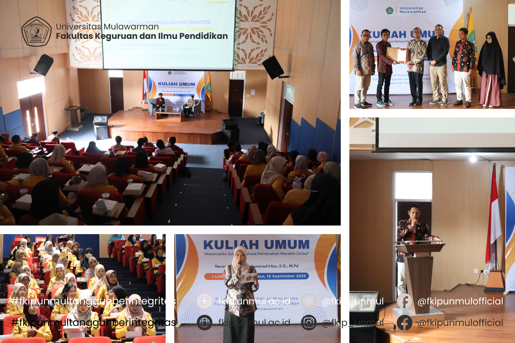 Samarinda, 16 September 2025 – Program Studi Pendidikan Matematika Fakultas Keguruan dan Ilmu Pendidikan (FKIP) Universitas Mulawarman menyelenggarakan kuliah umum dengan tema “Matematika Sebagai Bahasa Pemecahan Masalah Global” pada Selasa, 16 September 2025, bertempat di lingkungan FKIP UNMUL.