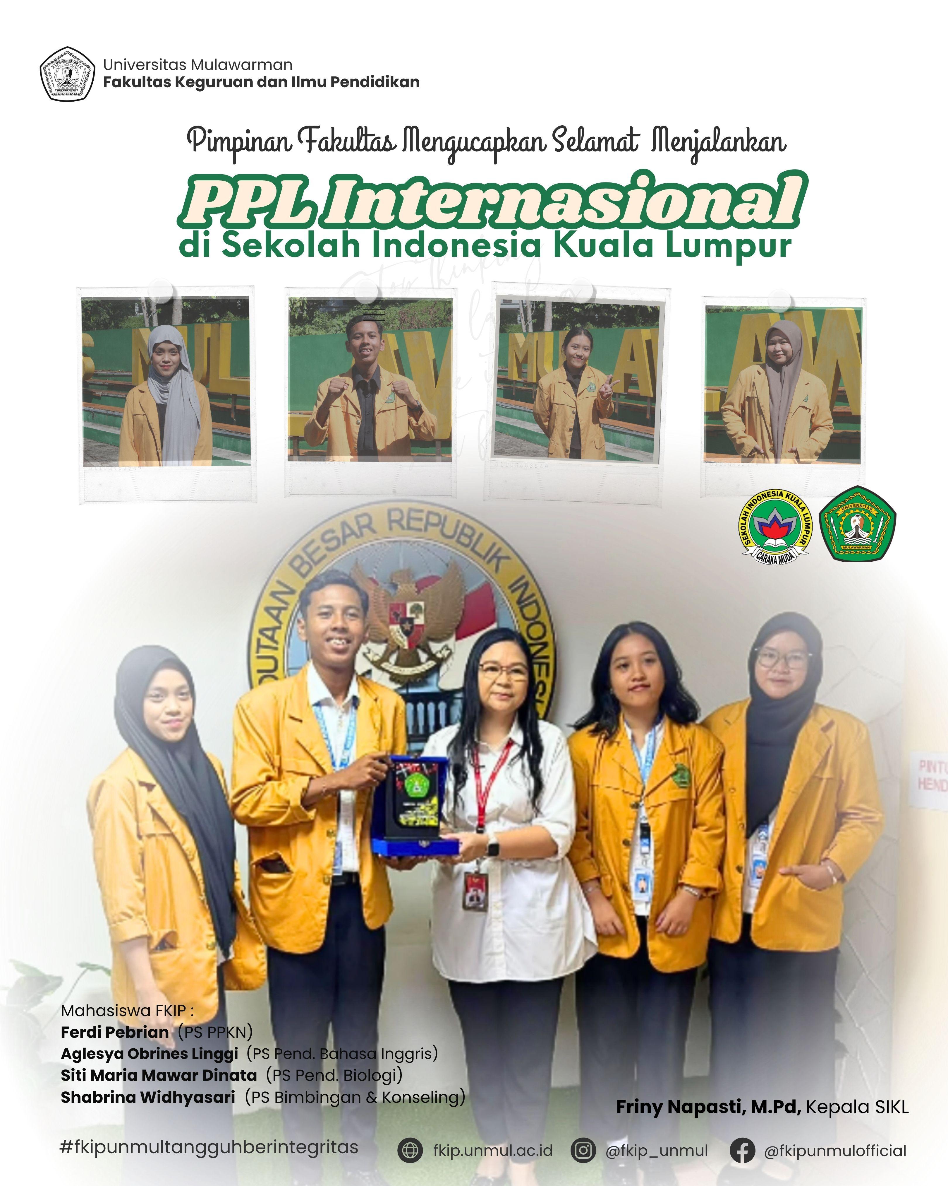 Senin, 4 Agustus 2025 - Program Praktik Pengalaman Lapangan (PPL) Internasional mahasiswa Fakultas Keguruan dan Ilmu Pendidikan (FKIP) Universitas Mulawarman resmi dimulai hari ini di Sekolah Indonesia Kuala Lumpur (SIKL), Malaysia.