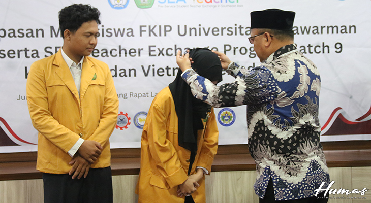 Rektor Universitas Mulawarman (UNMUL), Prof. Dr. Ir. H. Abdunnur, M.Si., IPU., secara resmi melepas Mahasiswa Fakultas Keguruan dan Ilmu Pendidikan (FKIP) UNMUL ke Filipina dan Vietnam Periode Tahun, sebanyak 12 mahasiswa. Pelepasan mahasiswa FKIP UNMUL ke Filipina dan Thailand tersebut dalam rangka Program SEA Teacher Exchange Batch 9 yang ditandai dengan pengalungan ID Card kepada perwakilan mahasiswa secara simbolis oleh Rektor UNMUL, Jum’at (18/8/2023).