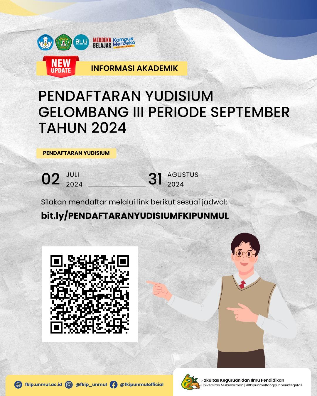 Pendaftaran Yudisium Gelombang III akan dibuka mulai 02 Juli 2024 hingga 31 Agustus 2024. Bagi mahasiswa yang memenuhi syarat, segera daftarkan diri Anda melalui link berikut: