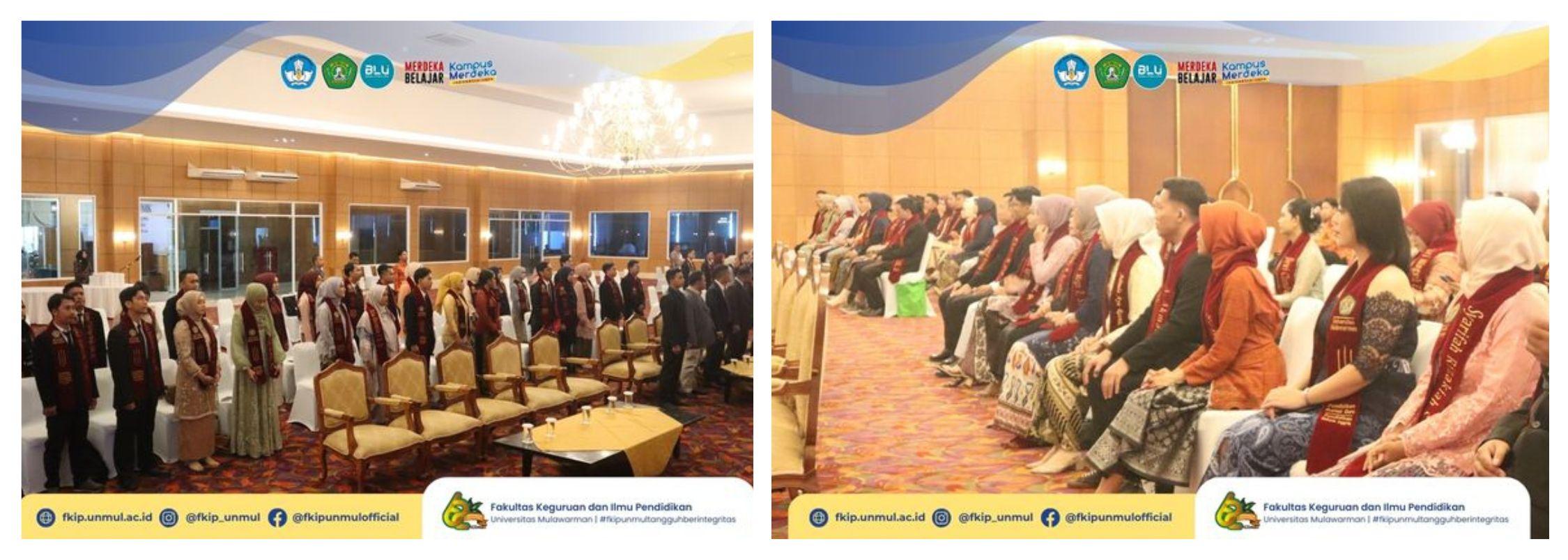 Acara ini dihadiri oleh Prof. Dr. Susilo, M.Pd Sebagai Dekan FKIP, Wakil Dekan Bidang Akademik Prof. Dr. Azainil, M.Si, Wakil Dekan Bidang Umum, SDM dan Keuangan Prof. Dr. H. Mukhamad Nurhadi, M.Si, Wakil Dekan Bidang Kemahasiswaan dan Alumni, Dr. Bibit Suhatmady, M.Pd, Prof. Dr. Makrina Tindangen, M.Pd Koordinator Program Studi Pendidikan Profesi Guru FKIP dan Dr. Sudarman, S.Pd., M.Pd Ketua Senat FKIP Universitas Mulawarman.