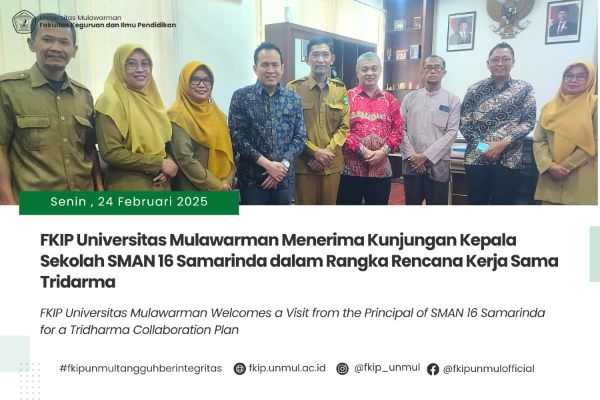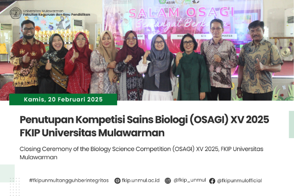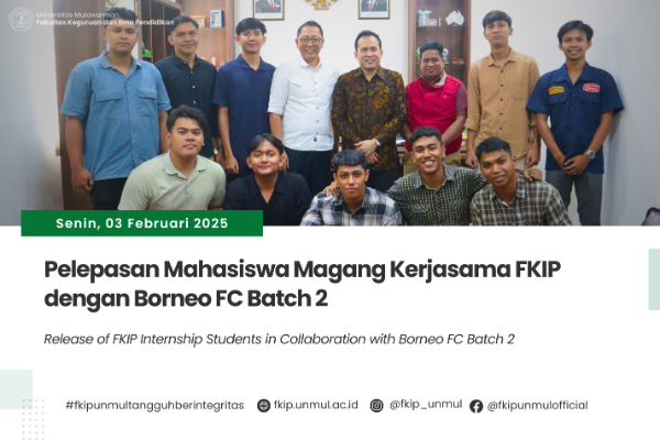 Samarinda, 26 Februari 2025 – Dekan Fakultas Keguruan dan Ilmu Pendidikan (FKIP) Universitas Mulawarman, Prof. Dr. Susilo, M.Pd, menyampaikan apresiasi dan ucapan selamat kepada dua mahasiswa Program Studi S1 Pendidikan Biologi FKIP UNMUL, Vio..