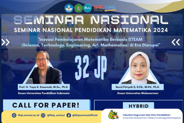 Samarinda (28/06), FKIP Universitas Mulawarman mengumumkan kegiatan Call For Paper untuk Seminar Nasional Pendidikan Matematika 2024 dengan tema “Inovasi Pembelajaran Matematika Berbasis STEAM (Science, Technology, Engineering, Art, Math..