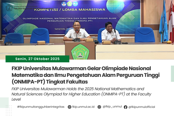 Samarinda, 27 Oktober 2025 – Fakultas Keguruan dan Ilmu Pendidikan (FKIP) Universitas Mulawarman kembali menggelar ajang bergengsi bagi mahasiswa dalam bidang sains melalui kegiatan Kompetisi Olimpiade Nasional Matematika dan Ilmu Pengetahuan Al..