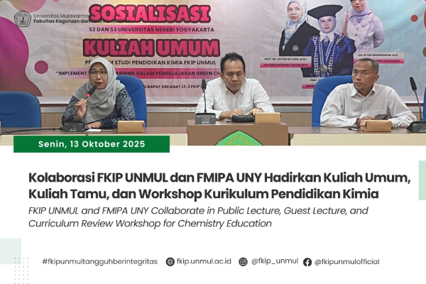 Samarinda, 13 Oktober 2025 – Program Studi S1 dan S2 Pendidikan Kimia Fakultas Keguruan dan Ilmu Pendidikan (FKIP) Universitas Mulawarman bekerja sama dengan Fakultas Matematika dan Ilmu Pengetahuan Alam (FMIPA) Universitas Negeri Yogyakarta (UNY..