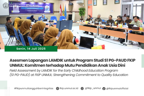 Samarinda, 14 Juli 2025 - Fakultas Keguruan dan Ilmu Pendidikan (FKIP) Universitas Mulawarman menerima kunjungan Asesmen Lapangan dari Lembaga Akreditasi Mandiri Kependidikan (LAMDIK) untuk Program Studi S1 Pendidikan Guru Pendidikan Anak U..
