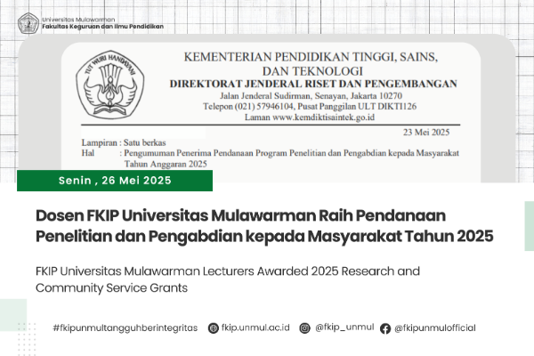 Samarinda, 08 Juni 2025 - Dalam semangat berbagi dan mempererat tali silaturahmi di momen Iduladha 1446 H, Fakultas Keguruan dan Ilmu Pendidikan (FKIP) Universitas Mulawarman melaksanakan kegiatan kurban pada Minggu, 8 Juni 2025. Kegiatan ini ..
