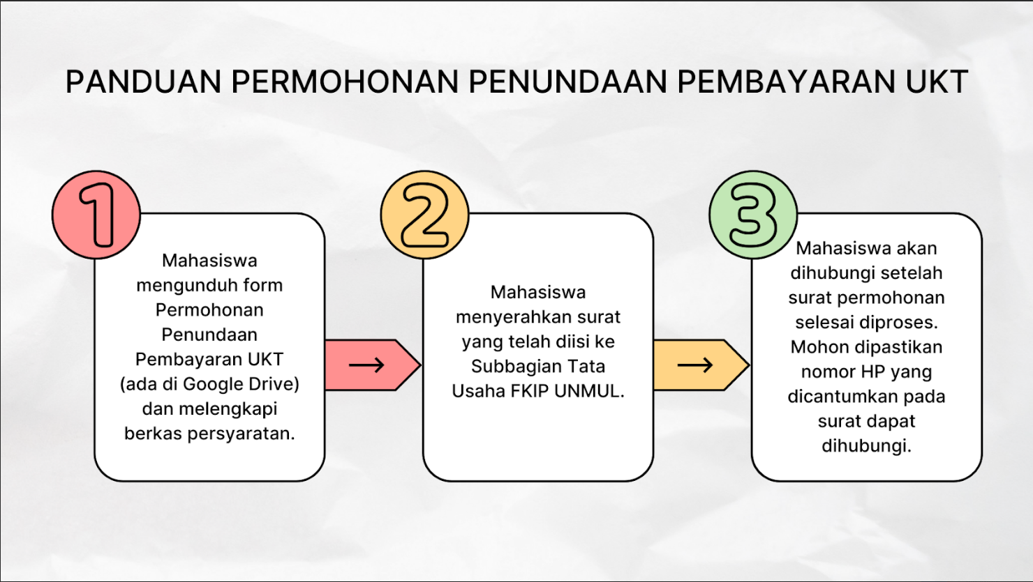 Google Drive Penundaan Pembayaran UKTMahasiswa menyerahkan surat permohonan yang telah diisi lengkap ke Subbagian Tata Usaha FKIP Universitas Mulawarman.